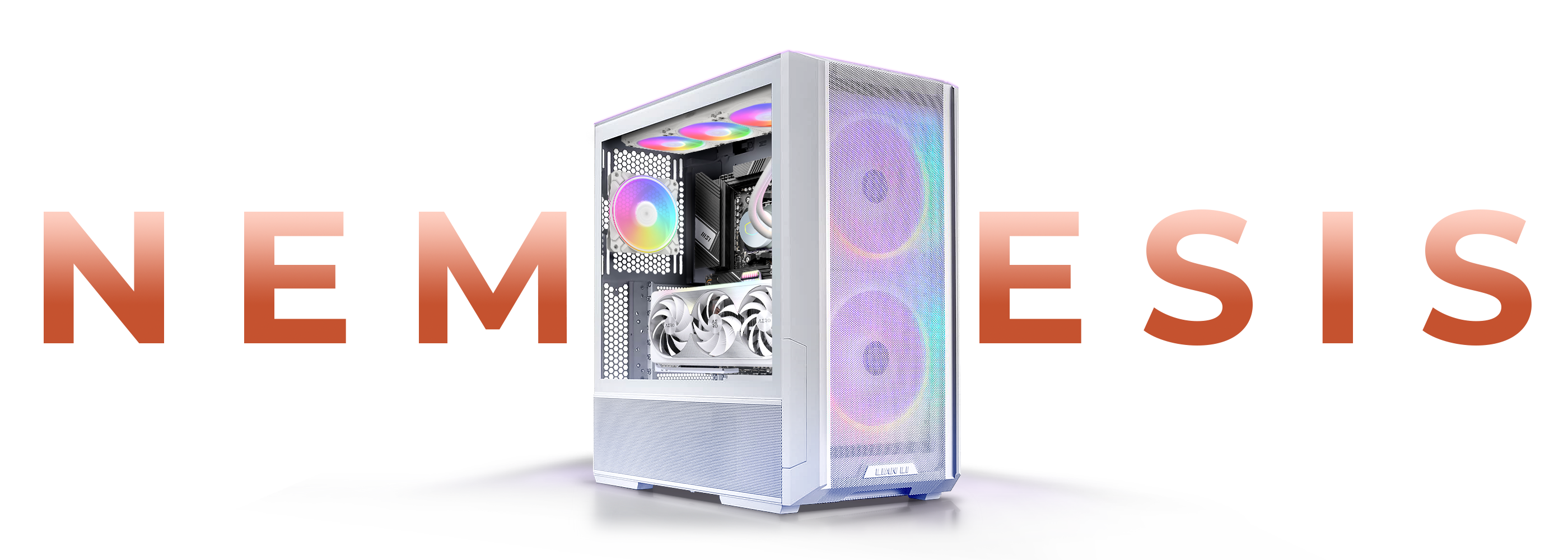 Clad in the Lian Li Lancool 216RX case, the Nemesis presents itself as an awe-inspiring masterpiece.. Radiating an aura of understated mystery, it becomes an extension of your malevolent ambitions.